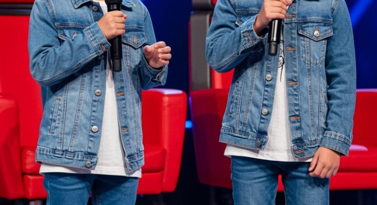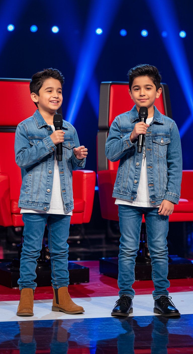In one of the most heart-melting moments to ever grace the stage of La Voz Kids, twin brothers Antonio and Paco stepped forward in matching outfits, clutching microphones almost as tall as they were. The lights dimmed, the crowd leaned in—and the magic began.